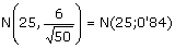 Una compañía aérea sabe que el equipaje de sus pasajeros tiene como media 25 kg. con una d.t. de 6 kg. Si uno de sus aviones transporta a 50 pasajeros, el peso medio de los equipajes de dicho grupo estará en la distribución muestral de medias