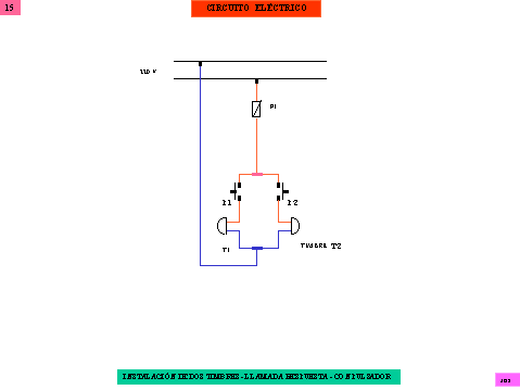 El esquema del circuito nos representa dos timbres-zumbadores en paralelo. El fusible protege al circuito de cualquier posible cortocircuito.