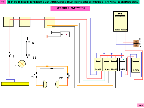 Con estos datos son suficientes para que el alumno haga su esquema de una manera general y pase a diseñarlo en borrador y a continuación pasar a montarlo sobre el tablero de la pared, simulando el montaje real .