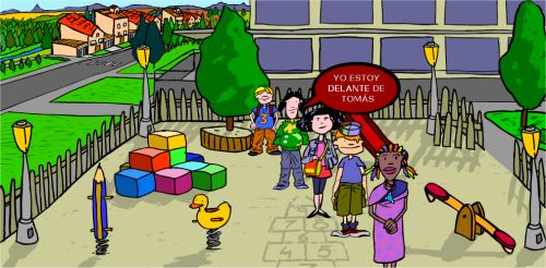 Se muestra el parque con los niños en plena actividad lúdica. En la parte inferior de la pantalla se puede leer  una crónica incompleta de lo que sucedió ese día. Haciendo clic encima del icono de cada personaje, el locutor nos narra de forma incompleta que hacía cada personaje. Las palabras que faltan para completar los sucesos están disponibles en la parte izquierda de la pantalla. Haciendo clic y arrastrándolas, se deben colocar encima de las líneas que inicialmente ocupan sus posiciones. Así se completan las frases.