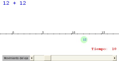 es decir, que a la posición anterior le tenemos que añadir 12, por lo tanto 12 + 12 = 24. Tenemos que representar el número 24. Cuando acertemos, en menos de 10 segundos, a colocar la bola en la posición 24, nos volverá a proponer el programa una nueva suma. Como se justificaba arriba, al sumar se obtiene un número mayor, y por lo tanto, a la derecha de los anteriores. Vínculos. Puede ser el momento de que hagas los siguientes ejercicios: