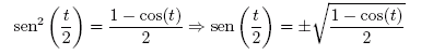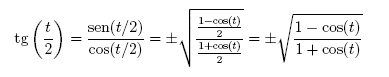 Veamos la fórmula de la tangente del ángulo mitad, para obtenerla basta