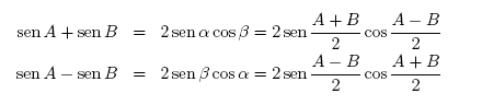 Consideramos \sen A±\sen B y vamos a transformarlo en un producto, para ello hacemos