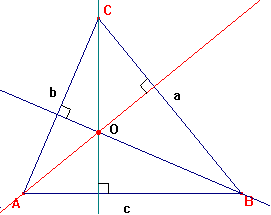 es la perpendicular que va desde el vértice hasta el lado opuesto. Vamos a trazar las tres alturas del siguiente triángulo. Observa que las tres alturas se cortan en un punto (O), que llamamos