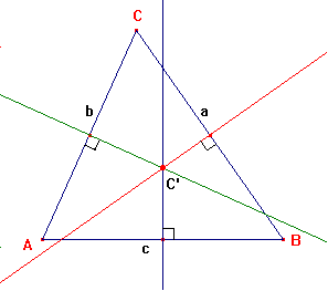 C, que es el circuncentro. La mediatriz de un lado es la perpendicular al lado pasando por el