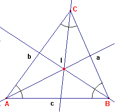 en dos partes iguales. Vamos a trazar las bisectrices del siguiente triángulo. Observa que las tres bisectrices se cortan en un punto (I), que llamamos
