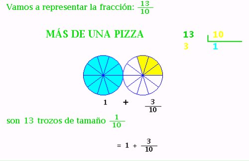 De la misma forma tienes una explicación sobre la visualización de fracciones impropias: