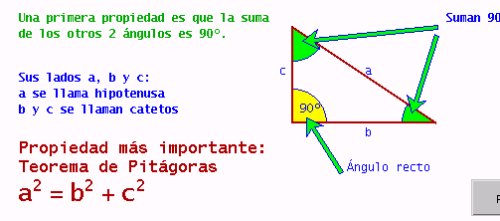 y explicaciones sobre los triángulos rectángulos y la aplicación de l teorema de Pitágoras:
